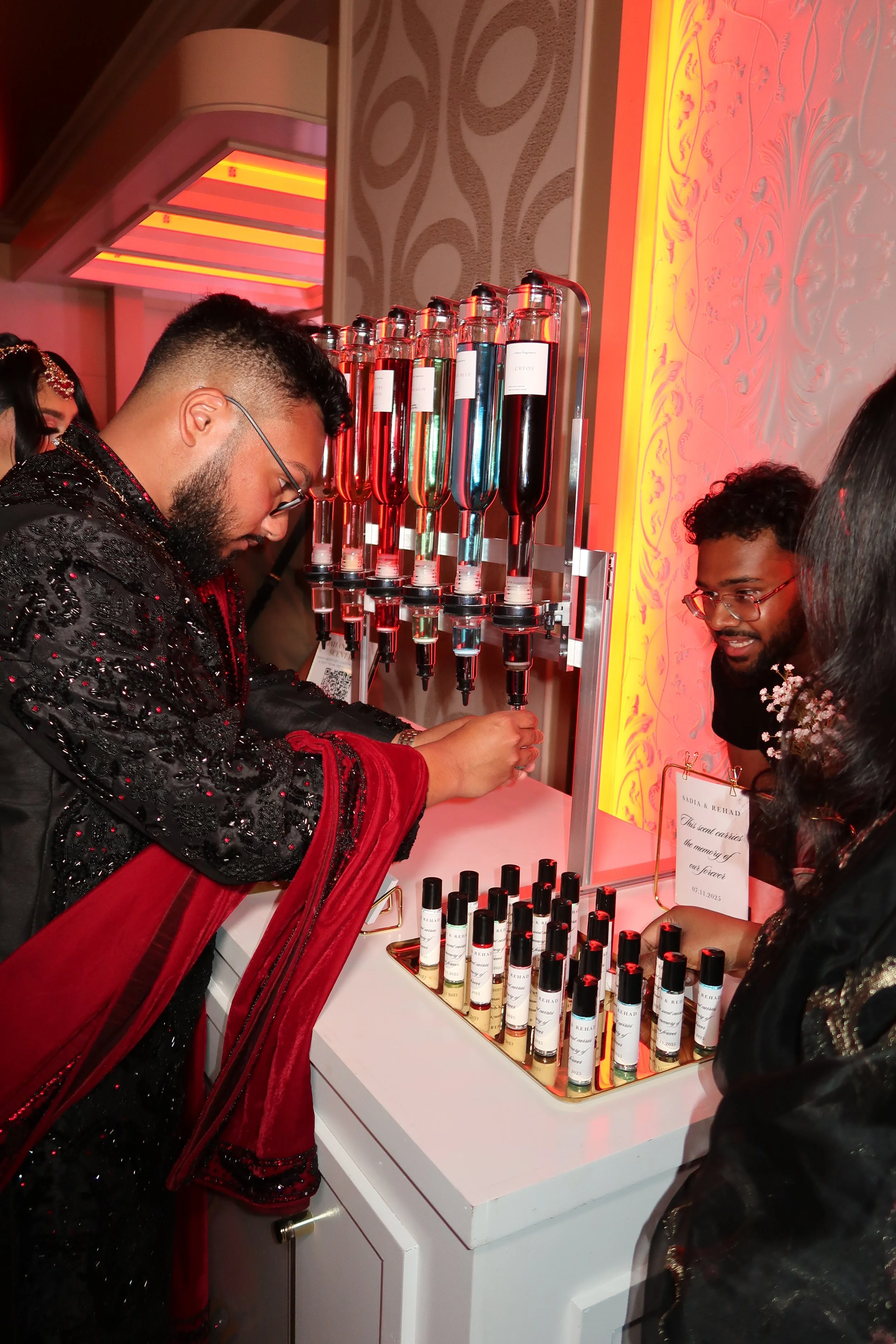 “The weather was so bad but Naheen and his partner still made it to the event with the most beautiful setup. The variety of perfumes was perfect, and the personal stories behind the names touched my heart. My guests loved it, and it truly made the day more special.”